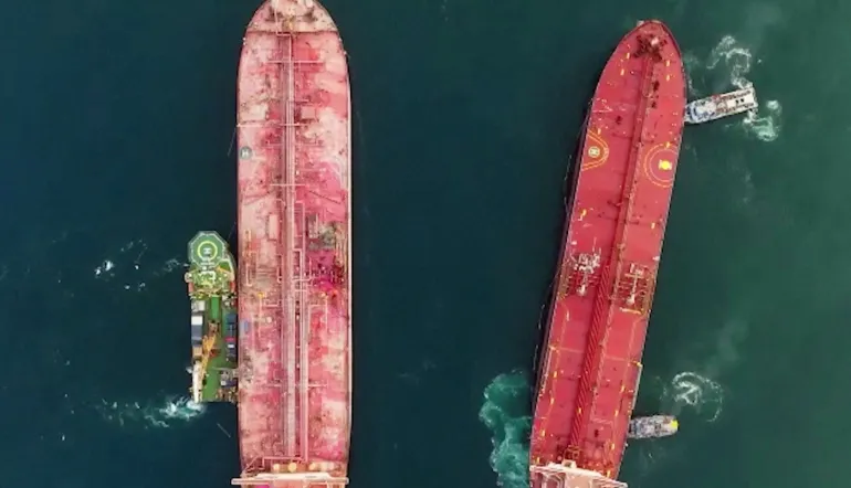 وصلت عملية نقل النفط من الناقلة المتهالكة صافر إلى ناقلة بديلة قبالة ميناء الصليف إلى نحو 70%.