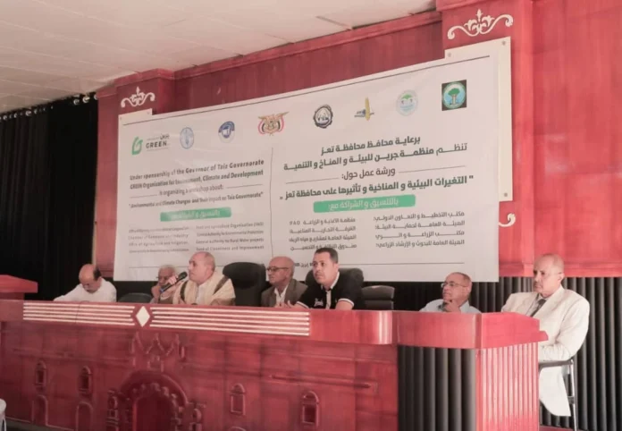 برعاية محافظ المحافظة انطلقت اليوم فعاليات ورشة العمل تحت عنوان “التغيرات المناخية والبيئية وأثرها على محافظة تعز” بحضور وكيل المحافظة الأول د. عبد القوي المخلافي، و ممثلي الجهات الرسمية المعنية أبرزها مكاتب التخطيط و التعاون الدولي، و الزراعة، والهيئة العامة للبحوث والإرشاد الزراعي، والهيئة العامة لحماية البيئة، وصندوق النظافة، وهيئة المياه، إضافة إلى ممثلي الجامعات و منظمات المجتمع المدني، كما شارك ممثلون عن منظمات دولية أبرزها منظمة الأغذية والزراعة (الـ فاو) التي مثلها د. عبد المؤمن شجاع الدين، وبرنامج الأمم المتحدة الإنمائي الذي مثله منسق المشاريع في المحافظة الأستاذ بكيل العامري، إلى جانب مشاركة القطاع الخاص من خلال مدير الغرفة التجارية الصناعية بالمحافظة الأستاذ مفيد عبده سيف.